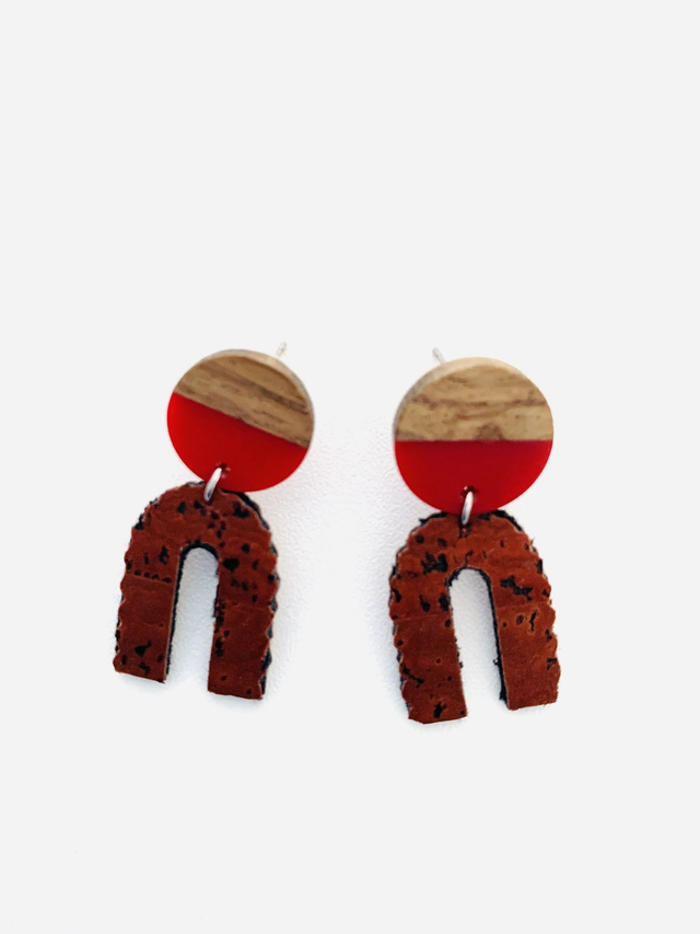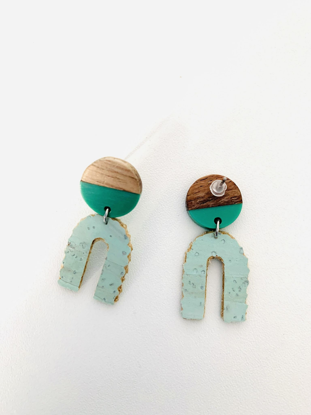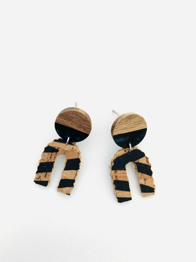 Les boucles d'oreilles sont réalisées à partir de chutes de liège.